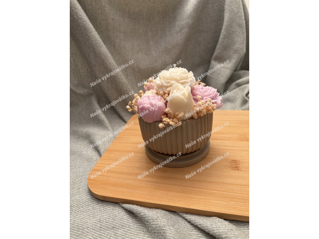 Každý květ je ručně odlévaný ze 100% sójového vosku a usazený do nádoby tak, aby celek připomínal malý dárkový puget. Žádný kus není úplně stejný ~ právě to z něj dělá originál.
