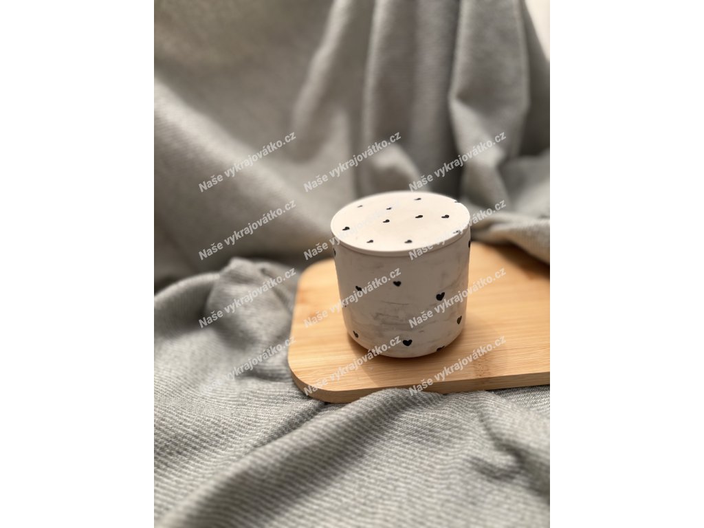 Každý kus je originál ~ černá srdíčka jsou malovaná ručně a lehce se liší tvarem i rozmístěním.