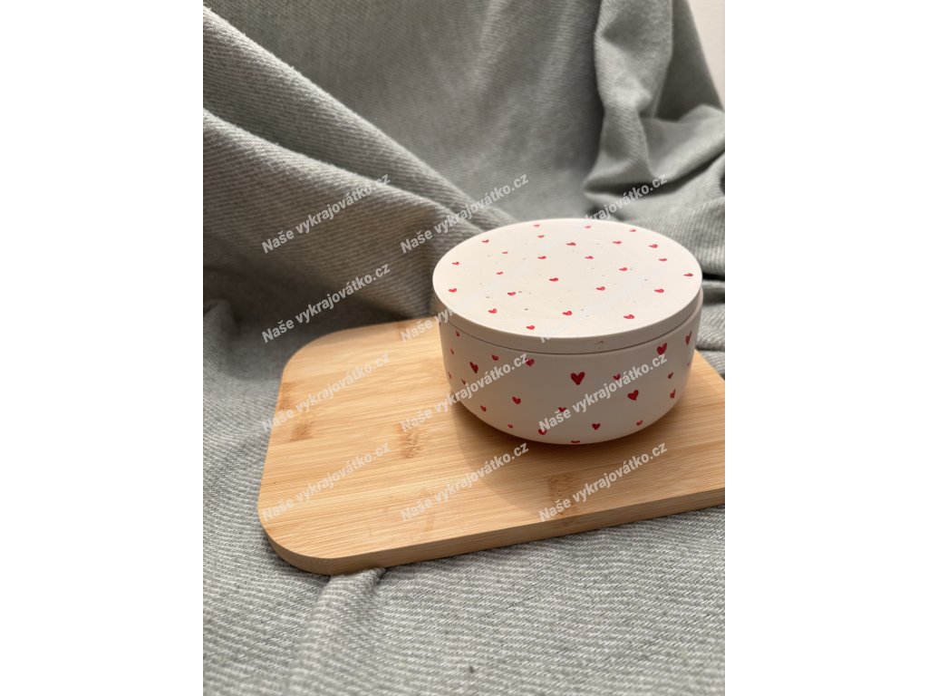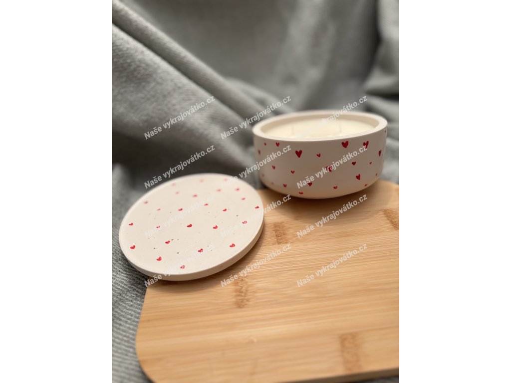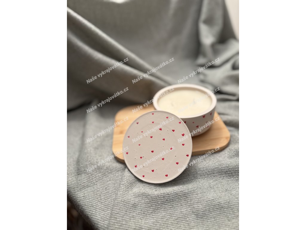 Každý kus je originál ~ červená srdíčka jsou malovaná ručně a lehce se liší tvarem i rozmístěním.