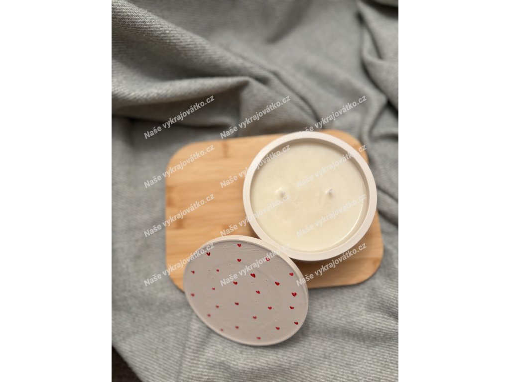 Ručně vyrobená svíčka ze sojového vosku v malovaném kalíšku s víčkem o objemu 220ml.